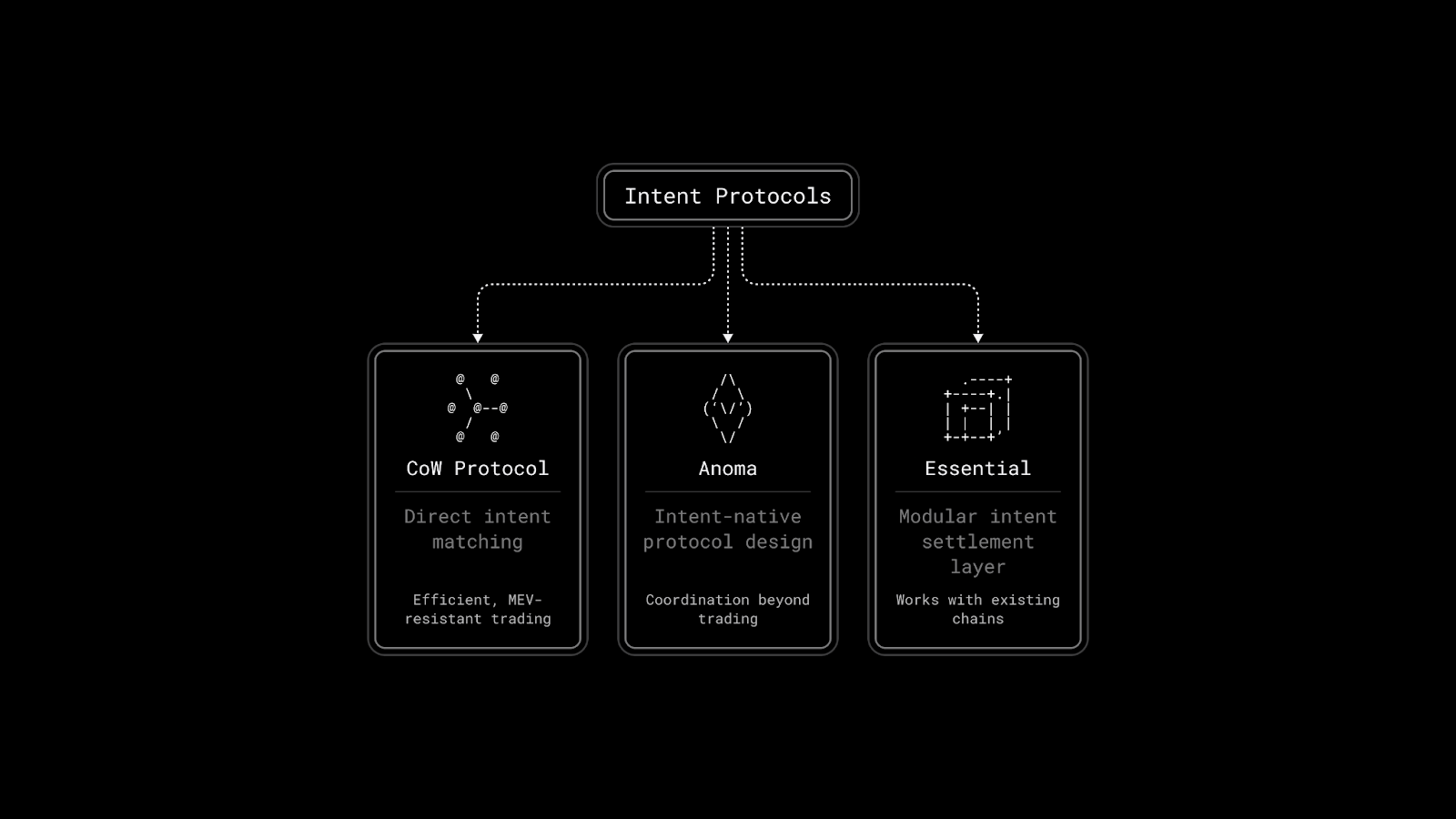 Anoma is the most ambitious, building an entirely new protocol from scratch with intents as the foundational building block. The vision extends beyond trading into coordination, resource allocation, and governance.