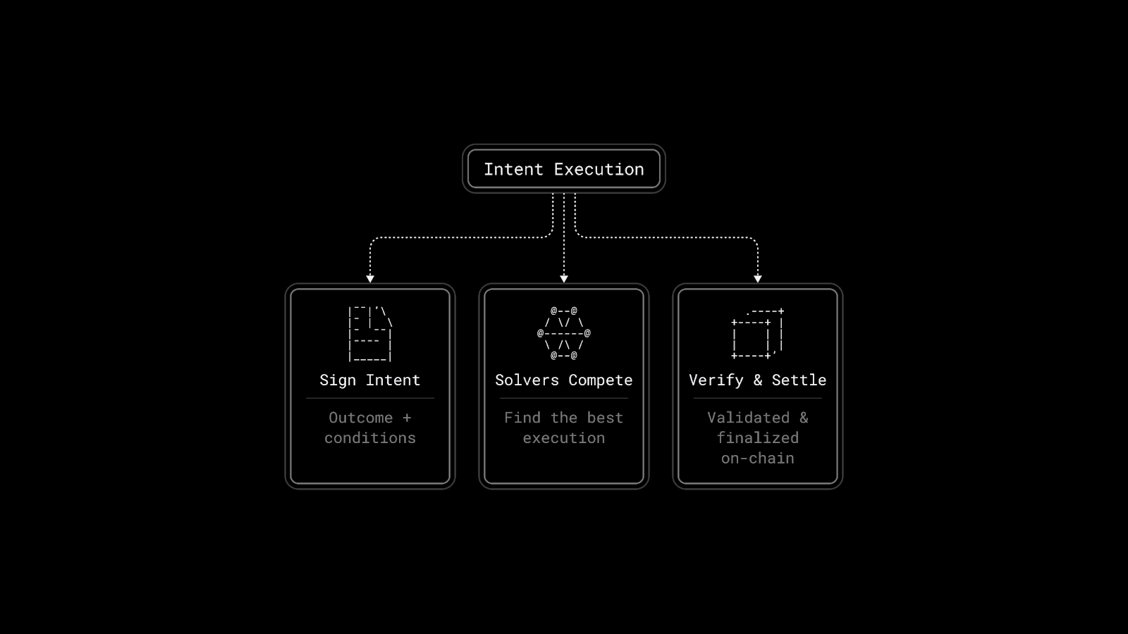 Think of it as the difference between giving someone turn-by-turn driving directions versus telling them the address. Same destination, very different burden on you. Once you've signed your intent, it's handed off to a network of specialized actors called solvers, who compete to find the best way to fulfill it.