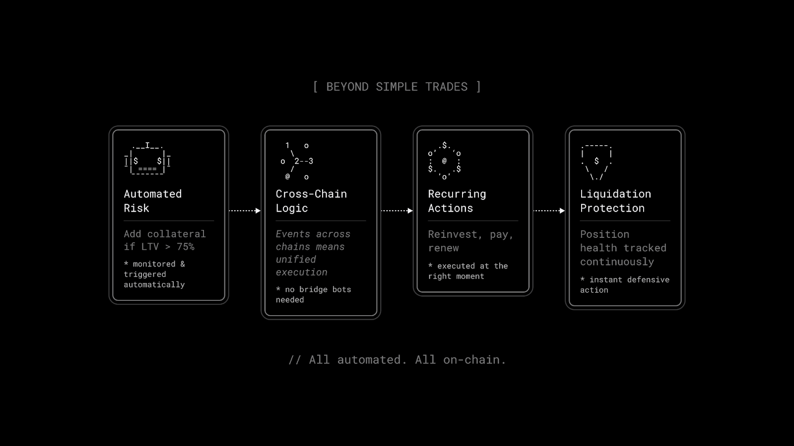 Keeper bots run on private servers, polling the blockchain for conditions and submitting transactions when thresholds are met. They work, but they're centralized, opaque, and require ongoing maintenance.